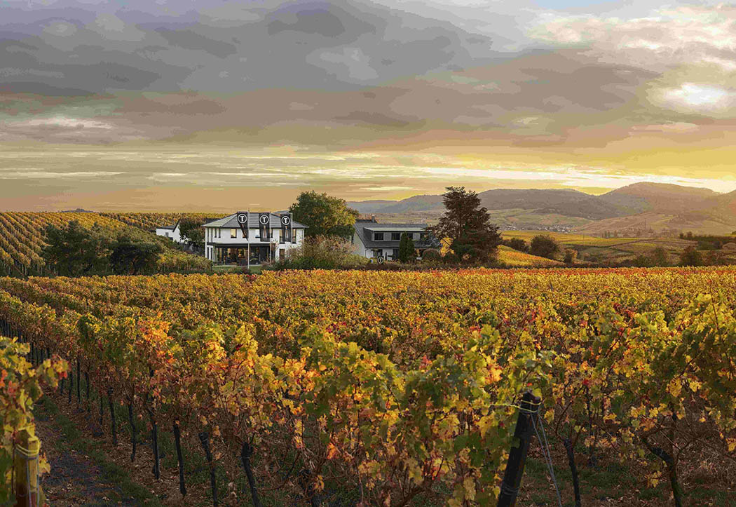 Tina Pfaffmann führt das 15 ha grosse Weingut in vierter Generation und hat in den vergangenen zwei Jahrzehnten frischen Wind in das alteingesessene Familienunternehmen gebracht. Schon mit 16 Jahren wusste sie, was sie wollte, und begann eine Winzerlehre, bevor sie nach einigen Umwegen den elterlichen Betrieb mit den 15 ha Rebland übernahm. Bei dieser Fläche soll es auch bleiben – die Betonung liegt auf dem Charakter, nicht auf der Quantität der Weine. Seit der Übernahme im Jahr 2000 hat die junge Winzerin viel bewirkt, basierend auf dem, was ihr übergeben worden ist. Der Lehm-/Kalkboden begünstigt die Kultivierung weisser Sorten, weshalb Riesling, Weiss- und Grauburgunder, gelber Muskateller, Gewürztraminer, Scheurebe und Grüner Silvaner im Mittelpunkt stehen. Der Entwurf für die auffällige und farbenfreudige Etikette stammt vom Leipziger Künstler Michael Fischer-Art.